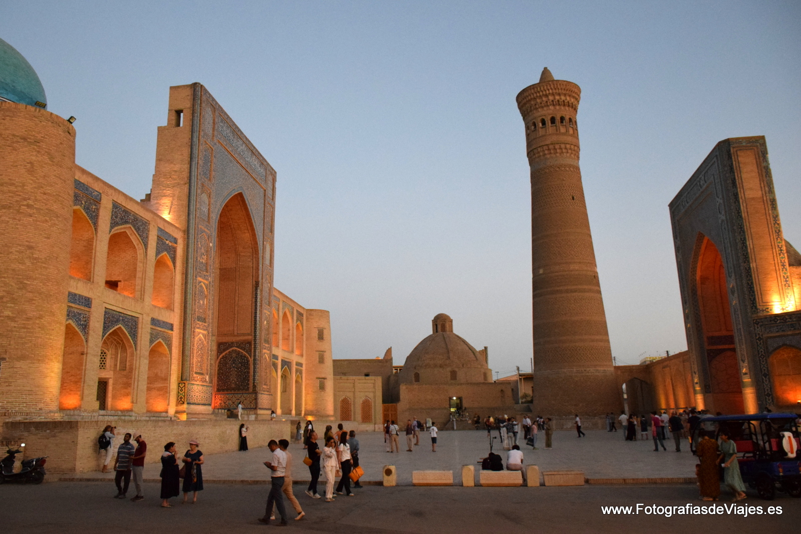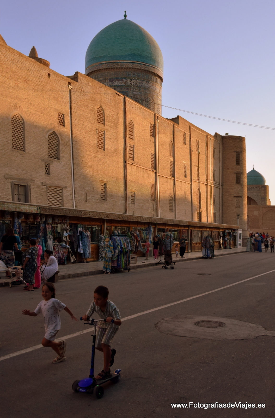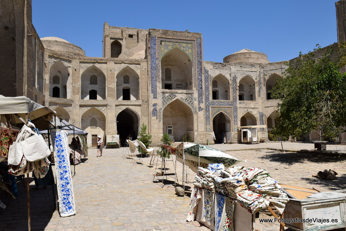 Saliendo de la Mezquita KalonPlaza KalonNiños jugandoen la plaza Po-i-KalanVista del Complejo Po-i-Kalan y el minareta KalonNiños jugando junto al Chor Minor o madrasa de Khalif Niyaz-kulVista de la ciudad desde la fortaleza ArqEntrada a la Fortaleza Arq de BukharaEstatua de Nasrudín Hodja en la plaza Lab-i HauzComplejo Po-i-Kalan y minarete KalonCallejeando por BujaráDentro de la Mezquirta Kalon, con el minarete Kalon al fondoCallejeando por BujaráCúpula de la Madrasa Mir-i-ArabComplejo Po-i-Kalan y minarete KalonCallejeando por los bazares cubiertosMadrasa de Ulug BegMinarete KalonAmbiente festivo en la plaza Lab-i HauzMadrasa Mir-i-ArabUna boda junto a la Madrasa Nadir Divan BegiMinarete KalonPuesto de venta de recuerdos en la Fortaleza ArqLa Plaza KalonVenta de pan en la plaza Lab-i HauzComplejo Po-i-Kalan, con el Minarete KalonBazares cubiertosNiños jugando junto a la Madrasa Mir-i-Arab