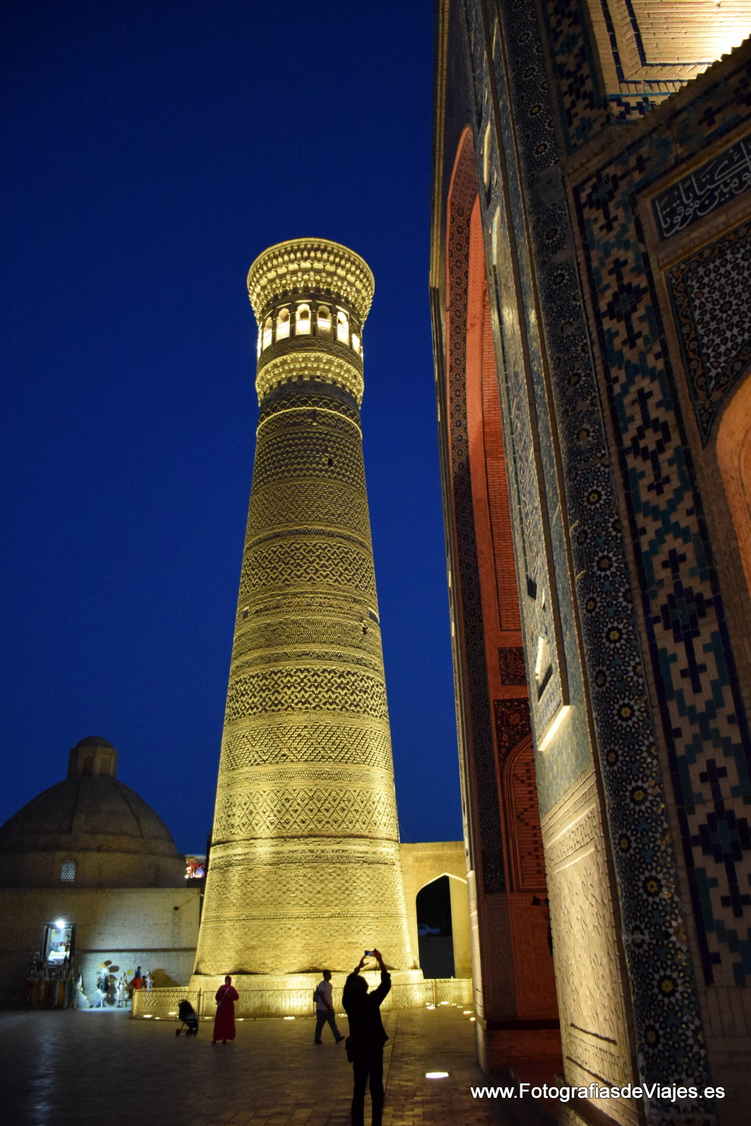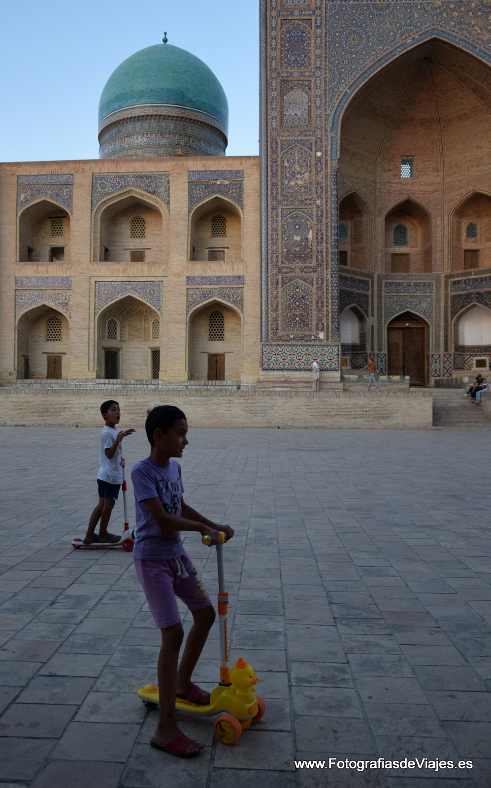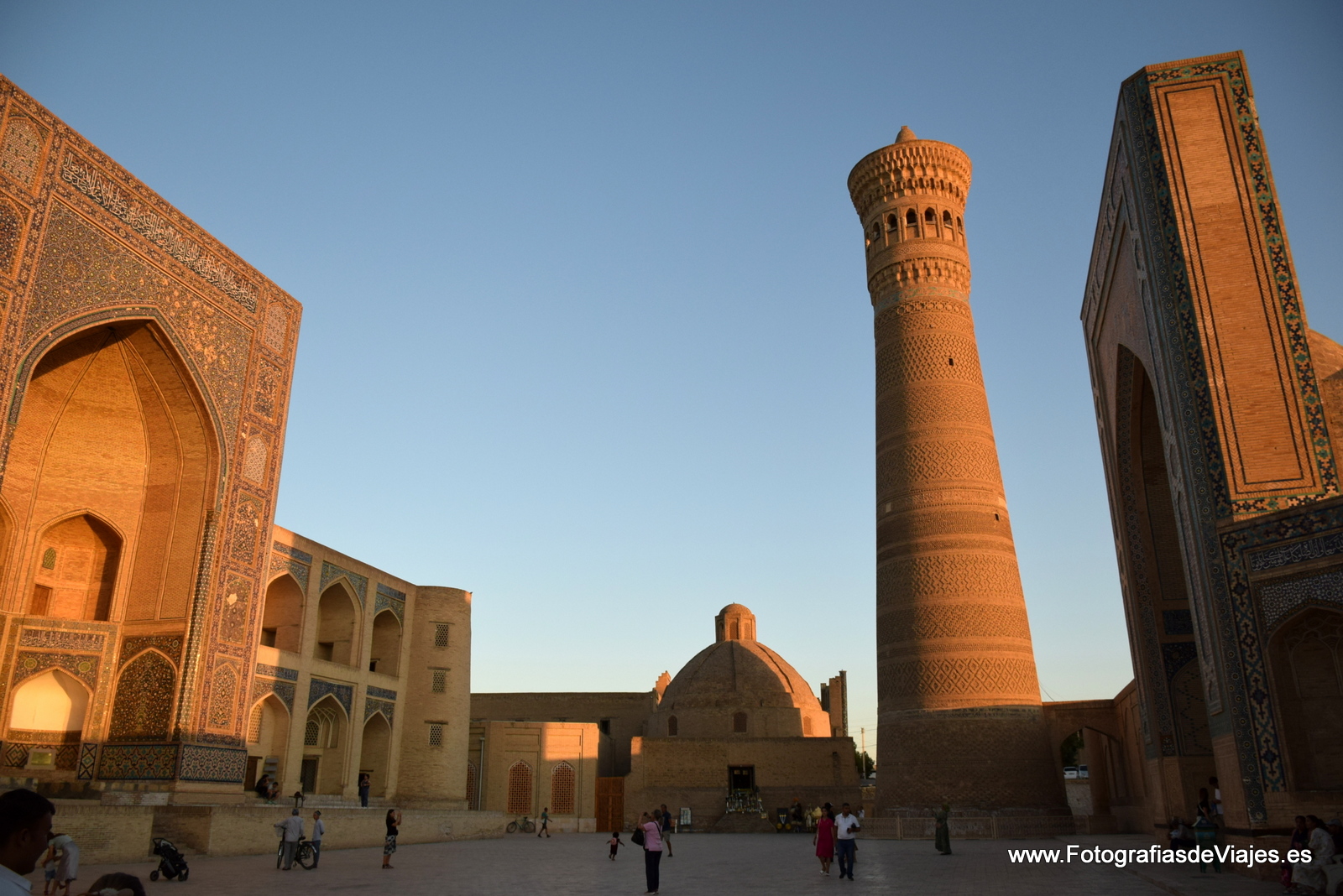 Saliendo de la Mezquita KalonPlaza KalonNiños jugandoen la plaza Po-i-KalanVista del Complejo Po-i-Kalan y el minareta KalonNiños jugando junto al Chor Minor o madrasa de Khalif Niyaz-kulVista de la ciudad desde la fortaleza ArqEntrada a la Fortaleza Arq de BukharaEstatua de Nasrudín Hodja en la plaza Lab-i HauzComplejo Po-i-Kalan y minarete KalonCallejeando por BujaráDentro de la Mezquirta Kalon, con el minarete Kalon al fondoCallejeando por BujaráCúpula de la Madrasa Mir-i-ArabComplejo Po-i-Kalan y minarete KalonCallejeando por los bazares cubiertosMadrasa de Ulug BegMinarete KalonAmbiente festivo en la plaza Lab-i HauzMadrasa Mir-i-ArabUna boda junto a la Madrasa Nadir Divan BegiMinarete KalonPuesto de venta de recuerdos en la Fortaleza ArqLa Plaza KalonVenta de pan en la plaza Lab-i HauzComplejo Po-i-Kalan, con el Minarete KalonBazares cubiertosNiños jugando junto a la Madrasa Mir-i-Arab