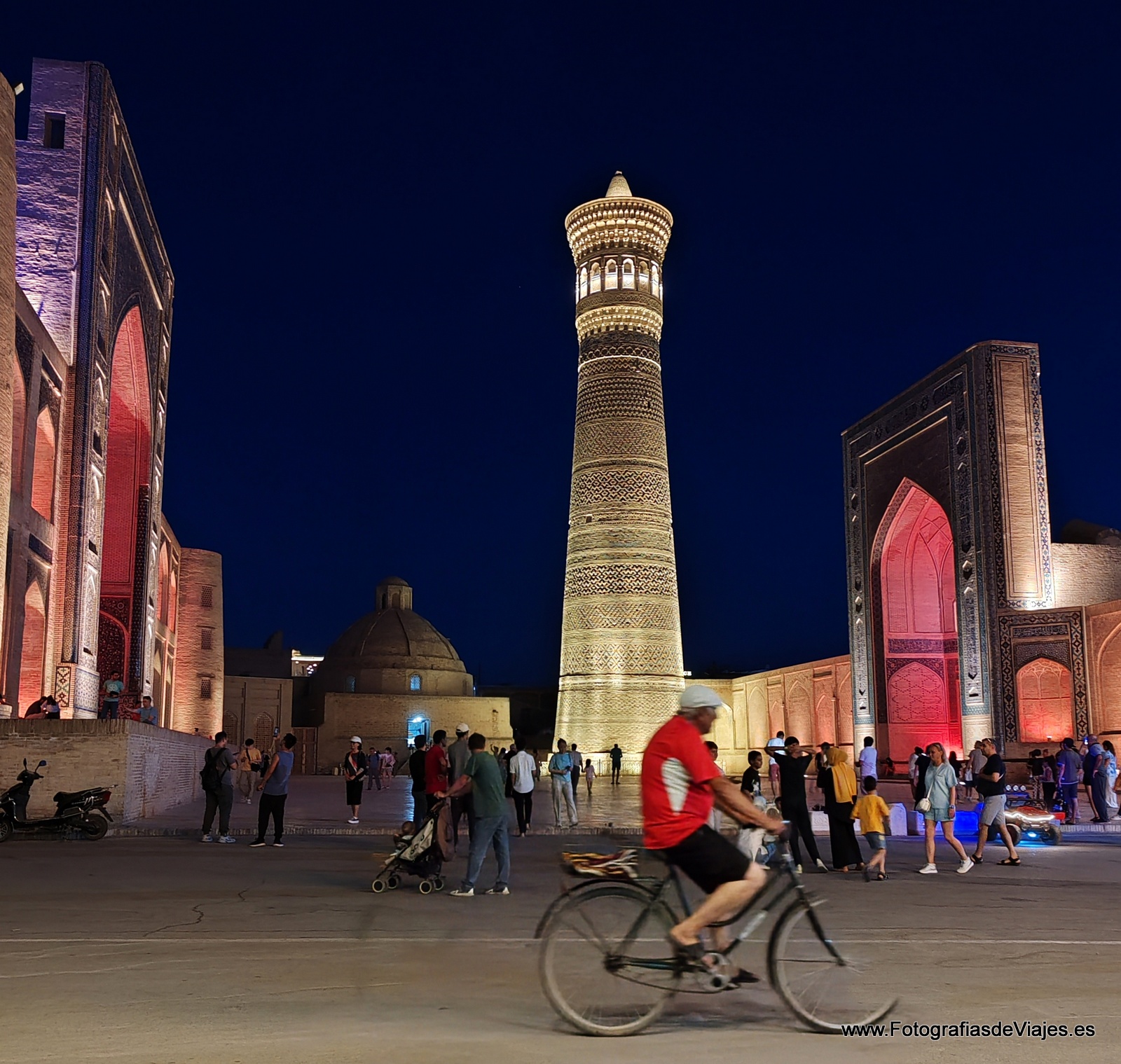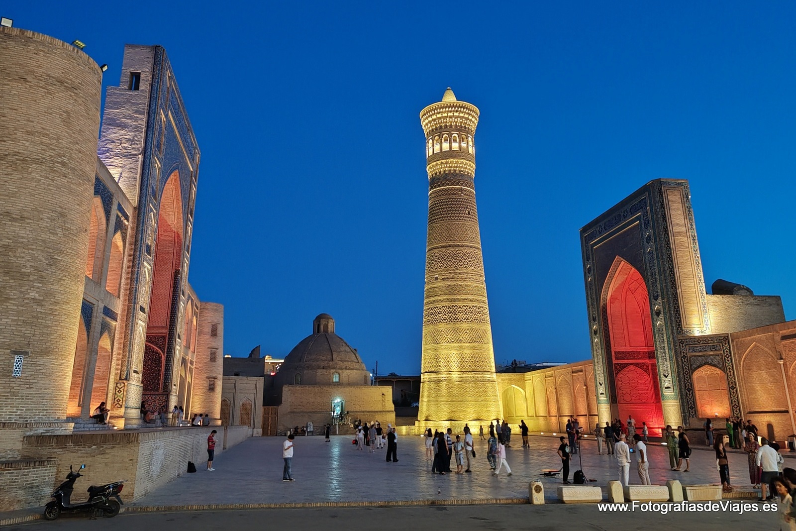 La perla del desierto o la perla del Islam, en el corazón de Uzbekistan, Bukhara (Bujará) es una de las ciudades míticas de la Ruta de la Seda, tal vez la más completa y mejor conservada del país y tan destacada o más que la mítica Samarkanda. Con un ambiente bullicioso y vivo, no deja de sorprender al visitante occidental, un magífico destino en el que perderse entre sus callejones, bazares y madrasas. Ubicada entre los desiertos del Kyzil Kum y Karal Kum es un auténtico oasis cultural en mitad de zonas muy áridas, en pleno Asia Central. Estas fotos son de agosto de 2024, con un intenso calor, un ambiente magnífico al aterdecer y una luz espectacular.