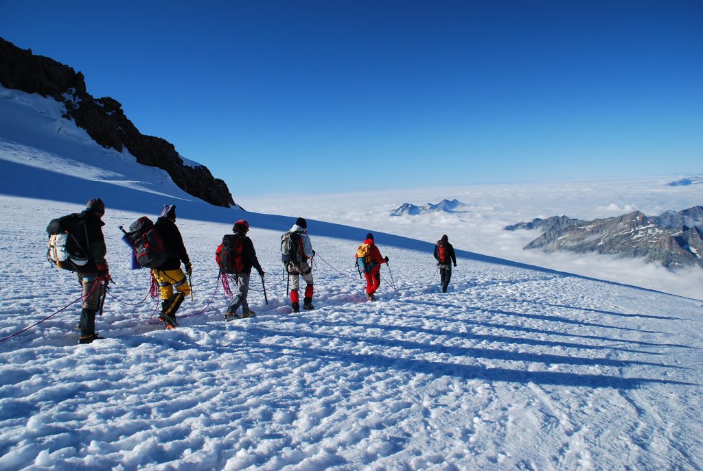 Ascensión a la segunda cumbre de Europa occidental, con Raquel, Willy, Javi, Alex y Luis.